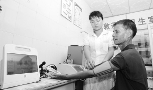 澄迈实施医疗健康服务信息化项目,覆盖县、镇、村三级医疗机构,大幅降低群众看病成本。图为澄迈县福山镇敦茶村卫生室医务人员正为村民采集网上远程会诊信息。 本报记者 李英挺 摄