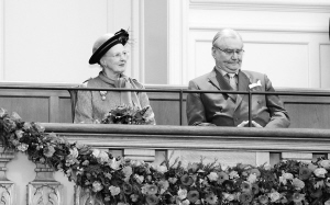 1月10日,丹麦女王玛格丽特二世(左)和亨里克亲王参加在丹麦国会举行的庆祝活动。 当日,丹麦女王玛格丽特二世登基40周年庆典活动在丹麦首都哥本哈根举行。 新华社发(吴波 摄)