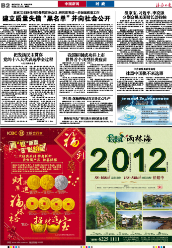 海南日报 中国新闻 010 2012-01-121 2012年01月12日 星期四
