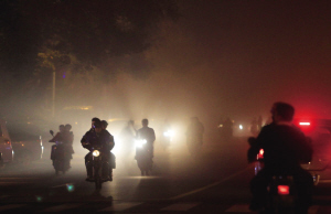 1月14日晚上,在海口市琼山区府城街头,行人在大雾天气里小心翼翼过马路的情景。据民航海南空管分局值班人员介绍,由于全天大雾天气影响,海口美兰机场航班大部分被延误。至晚上20时许,共有100个班次延误,备降5个班次,取消13个班次。 本报记者 张杰 通讯员 潘华清 摄