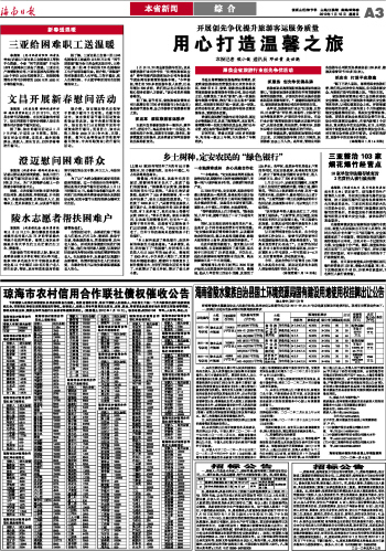 海南日报 本省新闻 003 2012-01-151 2012年01月15日 星期日