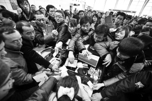 ←1月15日,受大雾天气影响,宁夏银川河东机场多趟旅客航班延误导致大批旅客滞留,旅客滞留高峰达到1500人次左右。