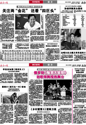 海南日报 体育新闻综合/娱乐新闻综合 009 2012-01-161 2012年01月16日 星期一