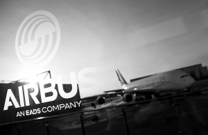 1月17日,在德国汉堡,一架阿联酋航空公司的空中客车A380飞机映在印有空客公司标志的玻璃上。 欧洲飞机制造商空中客车公司17日在德国汉堡举行的新闻发布会上宣布,2011年,空中客车公司共获得1419架飞机净订单,共交付534架民用飞机,在订单和交付量上均创公司历史新高。 新华社/法新