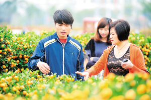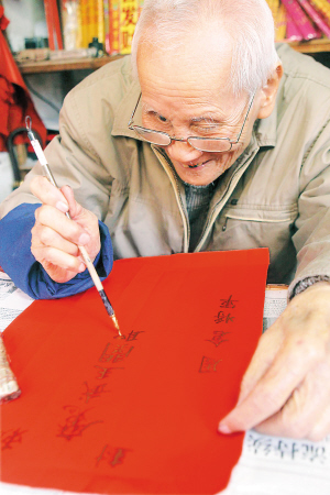 ② ① ③ ①春节临近,海口人民公园工作人员开始张灯结彩迎新春,前来休闲跳舞的市民沉浸在喜庆气氛中。本报记者 苏晓杰 摄 ②1月16日,海口市博爱路,90岁的蔡正孝老人为市民写春联。本报记者 陈德雄 摄 ③春节将至,大批年桔上市。图为琼海市民在万泉河广场选购年桔。特约记者 蒙钟德 摄