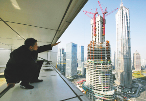 经过3年精心建设,位于金茂大厦旁的在建中国第一高楼“上海中心”已经全面完成地下工程,地面上主楼核心筒高度已突破230米,达到50层(1月17日摄)。 新华社发