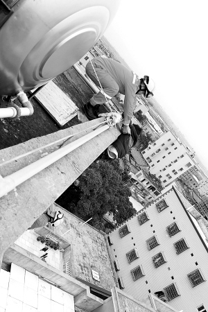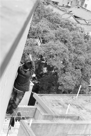 获救小男孩父母是外来务工人员,租住在这幢出租楼里。小男孩与伙伴在该出租楼顶玩“捉迷藏”,为不被伙伴发现,便顺着铁梯往下爬,但下来后却再也爬不上去。新华社发