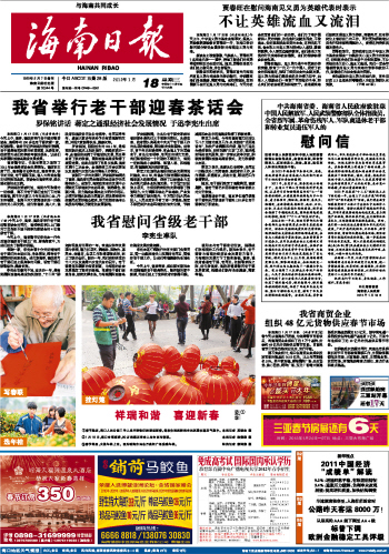 海南日报 头版 001 2012-01-181 2012年01月18日 星期三