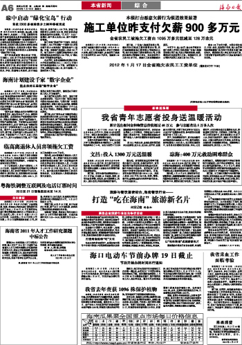 海南日报 本省新闻综合 006 2012-01-181 2012年01月18日 星期三