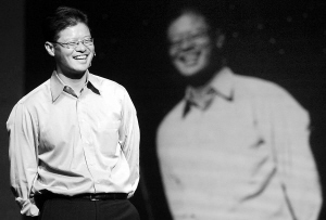 美国雅虎公司1月17日宣布,公司联合创始人杨致远已辞去雅虎董事会董事及其他所有公司职务,辞职从即日起生效。 这是杨致远2005年9月11日在第二届中国网商大会颁奖典礼上演讲的资料照片。 新华社发
