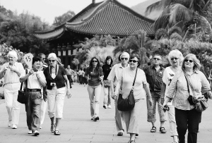 | 南山文化旅游景区吸引了大量的境外游客。 本报记者 苏建强 摄 |
