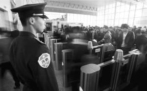 1月18日上午,在东环铁路海口东站进站口,大量乘客在工作人员组织下有序验票进站的情景。 据了解,在年前成功进入“乘客量千万人次俱乐部”后,东环铁路积极备战春运,做好各方面准备工作,为归乡心切的岛内外乘客提供安全、便捷、舒适的乘车环境。 本报记者 张杰 摄