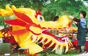 1月18日,一位师傅正在海口万绿园精雕细琢加紧制作龙灯。据了解,为迎接龙年新春的到来,海口市政府机关9个单位,美兰、秀英等4个区及部分大型企业等,各自以龙为主题制作高档彩灯参加万绿园灯展。为丰富游园活动,万绿园还设立了图片、雕塑、儿童乐园等多个游乐区域。 本报记者 苏晓杰 摄