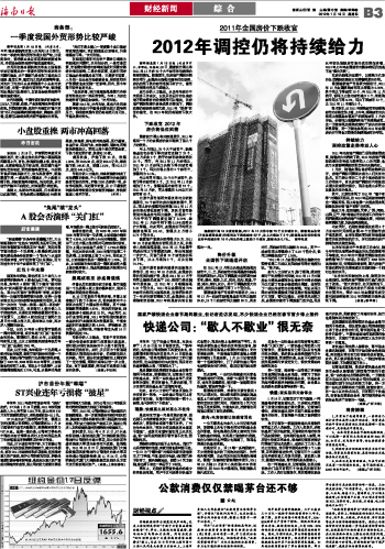 海南日报 财经新闻综合 011 2012-01-191 2012年01月19日 星期四