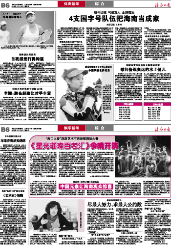 海南日报 体育新闻综合/娱乐新闻综合 014 2012-01-191 2012年01月19日 星期四