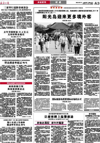海南日报 本省新闻时政 003 2012-01-191 2012年01月19日 星期四
