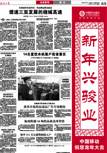 海南日报 本省新闻综合 005 2012-01-191 2012年01月19日 星期四