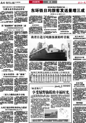 海南日报 本省新闻综合 004 2012-01-201 2012年01月20日 星期五