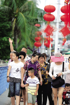→ 春节前夕,各地游客纷纷游三亚,其中不少是举家同游。 特约记者 孙 清 摄