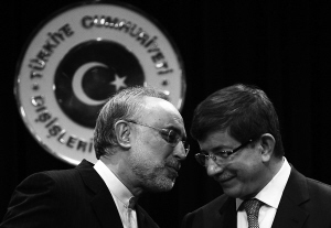 | ↑ 1月19日,土耳其外长达武特奥卢(右)与到访的伊朗外长萨利希在会谈后举行的联合记者会上,呼吁相关各方尽快重启伊朗核问题谈判,以维护地区稳定。 新华社/法新 |