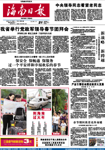 海南日报 头版 001 2012-01-211 2012年01月21日 星期六
