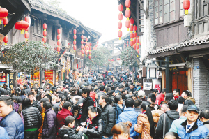 | 1月25日,龙年大年初三,重庆千年古镇磁器口挤满了来自各地的游人。 新华社发 |
