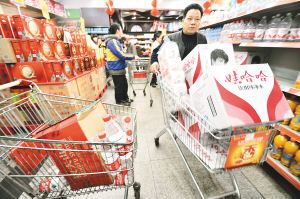 | 1月25日,人们在柳州一超市内抢购瓶装饮用水。 新华社发 |