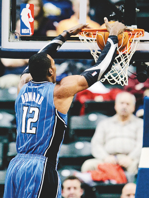 | 北京时间1月25日,霍华德打破魔术队队史个人总得分纪录。图为霍华德灌篮。小新发 |