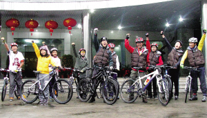 1月26日清晨,在海口市海甸岛,来自广州等地的初中学生驴友队伍,在专业户外骑行老师的带领下,即将开始为期11天的环海南岛骑行旅游活动。 本报记者 张杰 通讯员 罗晓燕 摄