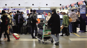 | 1月26日,旅客在北京首都国际机场准备办理登机手续。 新华社发(梁志强 摄) |