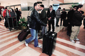 1月25日,在叙利亚首都大马士革,阿拉伯国家联盟(阿盟)驻叙利亚观察团中来自海湾阿拉伯国家合作委员会(海合会)的观察员准备离开一家酒店。 叙利亚外交部发言人吉哈德·马克迪西当日在大马士革证实,阿拉伯国家联盟(阿盟)驻叙利亚观察团中来自海湾阿拉伯国家合作委员会(海合会)的一些观察员已从叙利亚撤离。海合会24日发表声明说,由于叙利亚政府未能制止流血冲突,海合会决定撤出阿盟驻叙利亚观察团中海合会国家的观察员。 新华社/路透