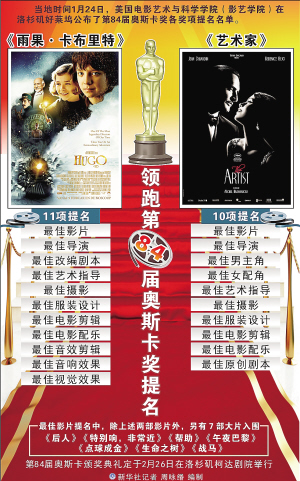 | 图表:《雨果·卡布里特》和《艺术家》领跑第84届奥斯卡奖提名