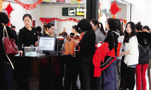 昨天中午,记者在位于美兰国际机场隔离区的海口免税店看到,货架和收银台周遭都围满了人群,许多旅客在雅诗兰黛、迪奥、普拉达等国际一线名牌货架前抢购商品,收银人员则忙得不亦乐乎。“为了应对春节黄金周引发的购物潮,公司共投入200多人,每天从上午6时忙到晚上11时,但还是忙得团团转。”美兰机场免税店公司相关负责人说,没想到销售如此火爆。