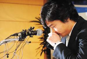 1月31日,韩国著名足球明星安贞焕在首尔举行退役发布会,正式宣布退役。图为安贞焕在发布会上流下伤心的泪水。 新华社发