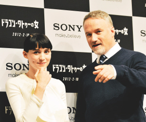 1月31日,《龙纹身的女孩》美国女主演鲁妮·玛拉(左)和美国导演大卫·芬奇在日本东京出席电影新闻发布会。该片将于2月12日在日本上映。 新华社发