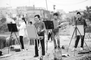 1月31日,一位美术老师(前)带领学生在万泉河畔绘画。春节期间,琼海市喜爱绘画的学生在老师的带领下,来到万泉河畔描绘新春美景。 特约记者 蒙钟德 摄