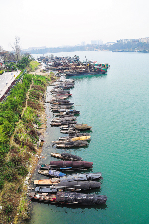 | 1月31日,在广西柳州市壶西大桥附近,大批船只停泊在柳江上。 |