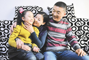 | 1月30日,谢尚威在家中和妻子女儿在一起。 新华社发 |