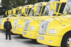 上海市崇明县政府采购的17辆校车停放在崇明中学校内,准备在即将到来的春季学期中使用(1月31日摄)。 为迎接新学期的到来,上海市崇明县近日购买了17辆安全系数较高的新校车,将全部用于服务崇明北部、东南部的6所中小学学生。在校车的采购与管理中,崇明县政府负责校车的采购和整体统筹,而经营事务则委托给对公交运营富有经验的崇明巴士公交有限公司。校车每天接送每位学生的成本为20元以上,但校车的实际收费为每个学生每天3至5元,这中间的差额都将由政府补贴来持平。 新华社发
