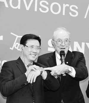 1月31日,普茨迈斯特创始人卡尔·施莱西特(左二)与三一集团董事长梁稳根(左一)出席发布会。在发布会上,两人互换手表,表示最终完成收购只是时间问题。 当日,在三一集团位于长沙的总部,三一集团与拥有世界混凝土机械第一品牌“大象”的德国普茨迈斯特公司联合举行新闻发布会,正式宣布三一重工将在2012年第一季度末完成对普茨迈斯特100%股权的收购。 新华社记者 龙弘涛 摄