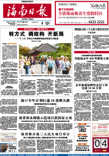 海南日报 首版 001 2012-02-011 2012年02月01日 星期三