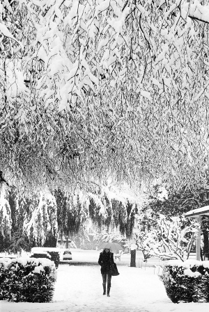 ↑ 1月31日,在格鲁吉亚首都第比利斯,人们走在雪地里。 新华社/法新