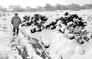← 1月31日,一男子从英格兰西南部埃克斯穆尔邓克里山上被积雪覆盖的树木旁走过。 新华社/美联社