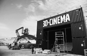 | → 2月1日下午,工作人员正在搭建沃帆赛三亚赛事村的3D影院。据悉,从1月25日开始,沃帆赛三亚站赛事村开始搭建工作,预计将于2月4日正式开村。