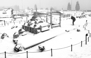 一些村子断电,维修工人“趟”雪抢修。多德尔说,部分地区积雪有两米深,救援人员打通道路,就像是“挖隧道”。