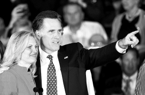 | 1月31日,美国前马萨诸塞州州长米特·罗姆尼(右)和妻子在佛罗里达州的坦帕参加竞选获胜庆祝集会。 新华社/法新 |