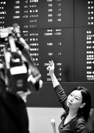 2月2日,电视工作人员在东京证券交易所里检查电子显示屏上显示的股价信息。 日本当地时间2日上午9时,东京证券交易所系统出现故障,导致索尼、东京电力等241只上市股票停止交易。 新华社发