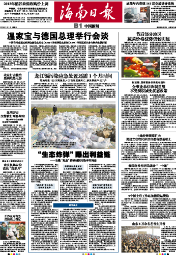 海南日报 中国新闻 009 2012-02-031 2012年02月03日 星期五