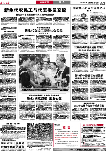 海南日报 本省新闻 003 2012-02-041 2012年02月04日 星期六