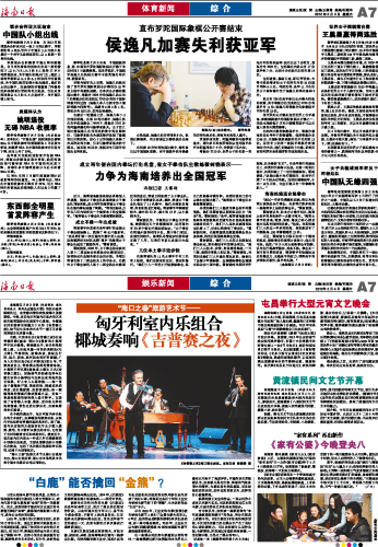 海南日报 体育新闻/娱乐新闻 007 2012-02-041 2012年02月04日 星期六
